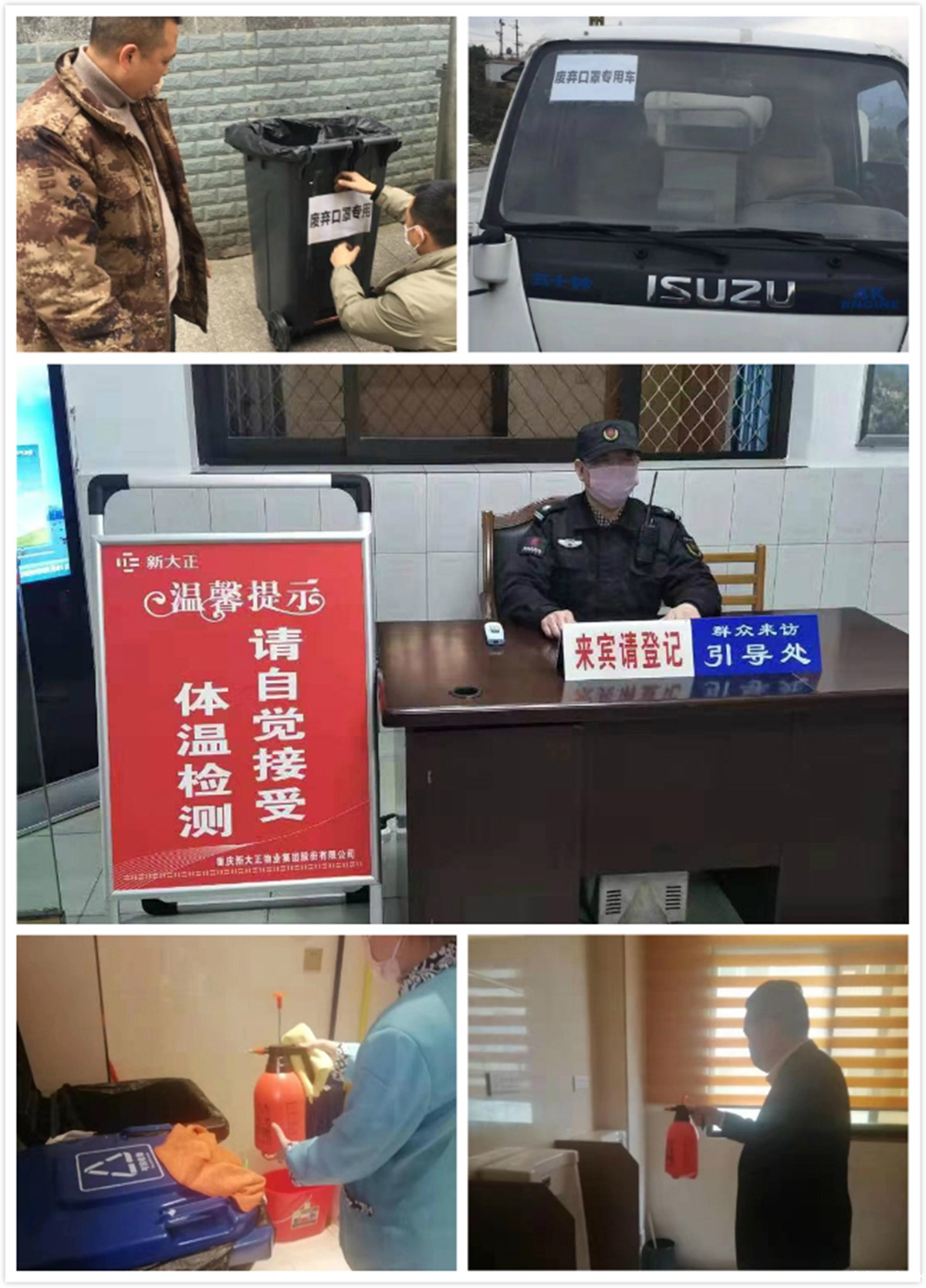 成立疫情防控工作小组,落实物资保障服务,做好消毒杀毒,值班值守,人员管控,设置废弃口罩专用垃圾桶等工作,强化信息互通和管理。